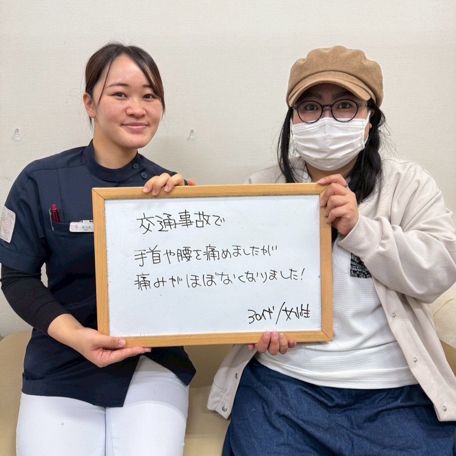 交通事故で手首や腰を痛めましたが、痛みがほぼ無くなりました!